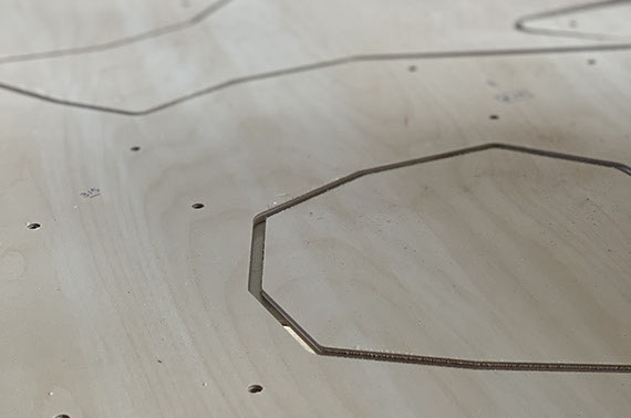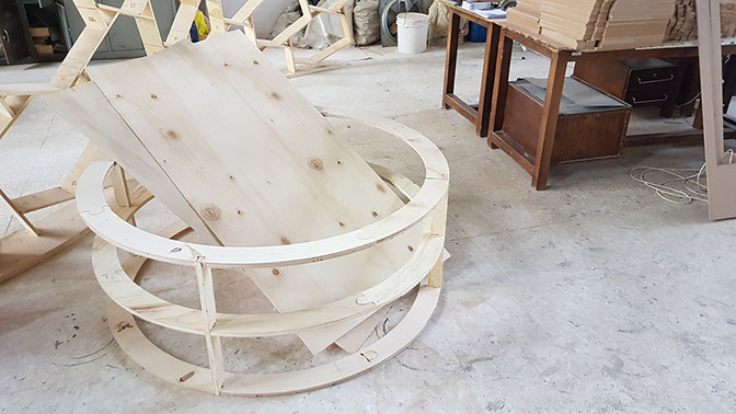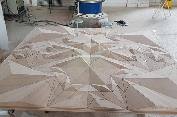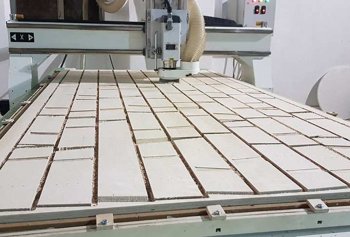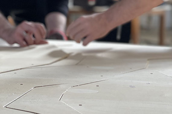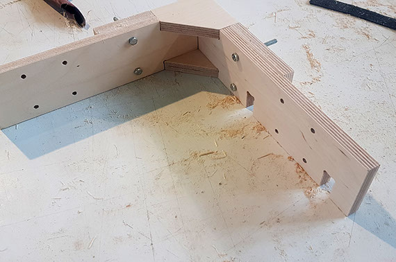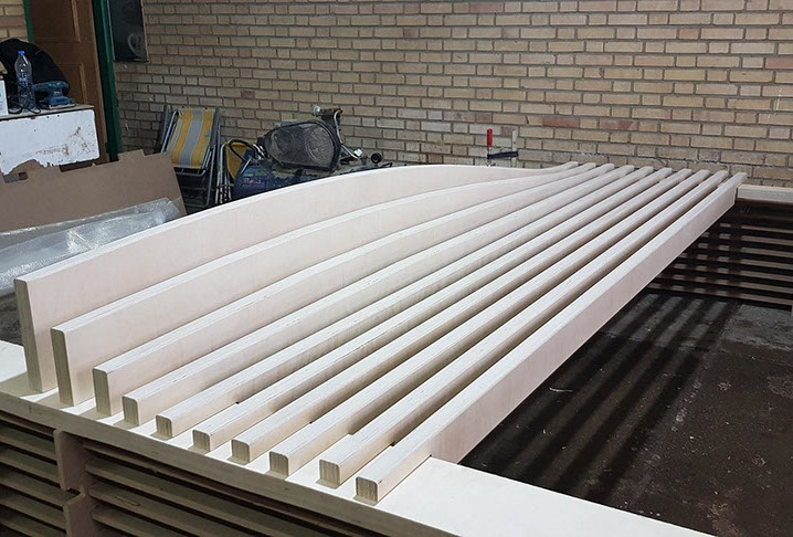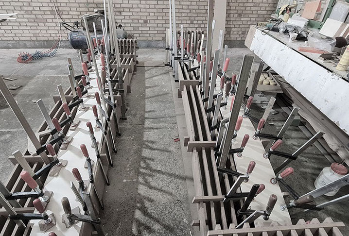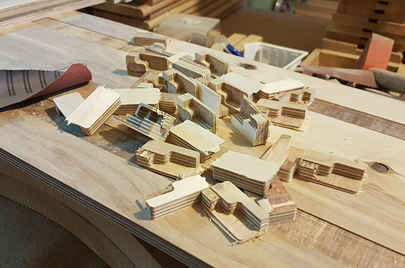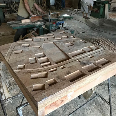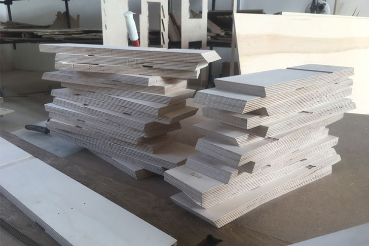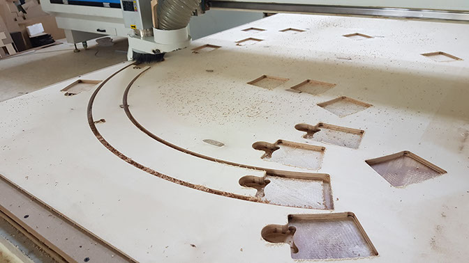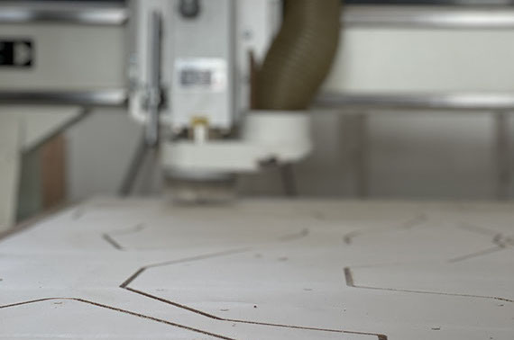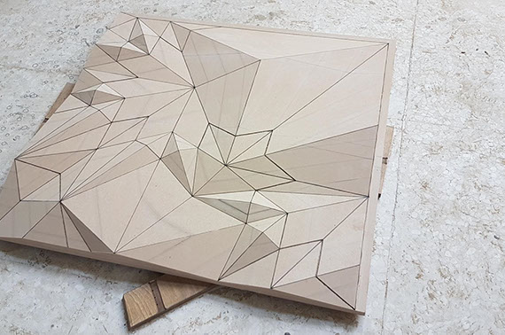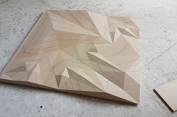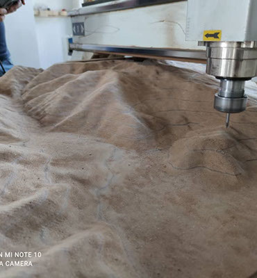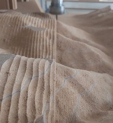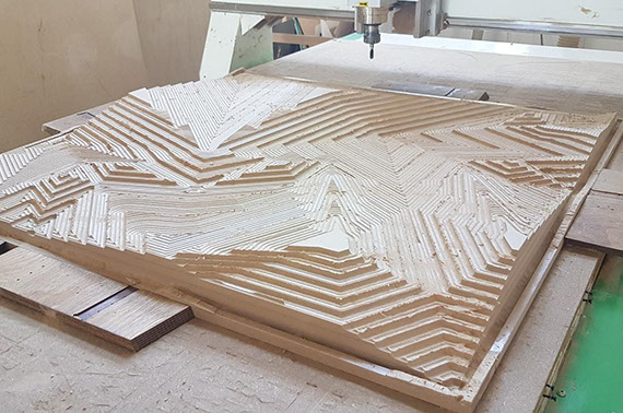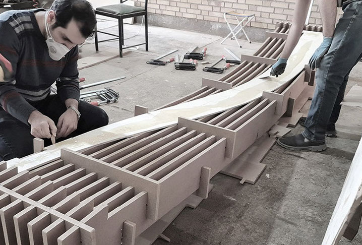 For The Persian Fall project I designed and made a four-part mold for a mirrored panel, according to the client's specifications and the material and CNC machine constraints. Each part of the mold was composed of several layers of MDF, glued together. I then mounted the mold on an iron chassis, ready for the triangular mirror pieces to be attached. I managed to personally perform every stage of the project, from design to cutting, from chassis making to assembly. The experience I had before in making topography models was very useful in this project.