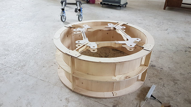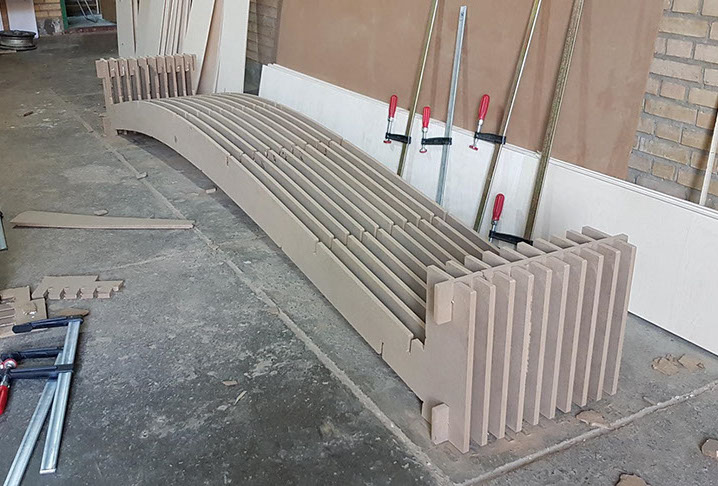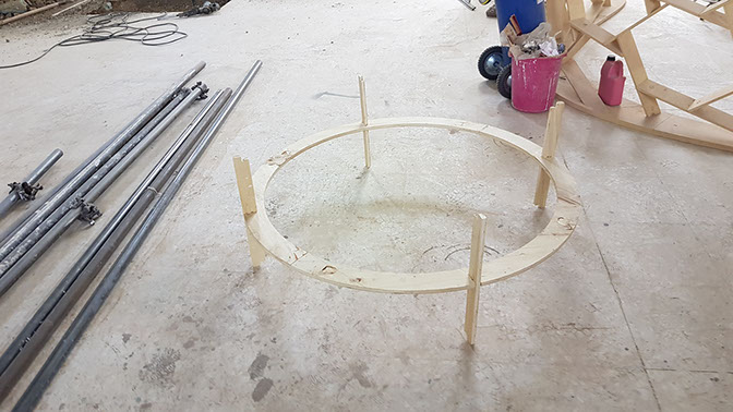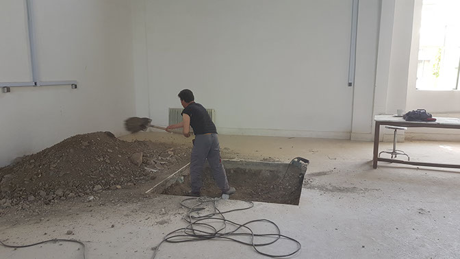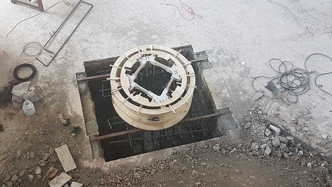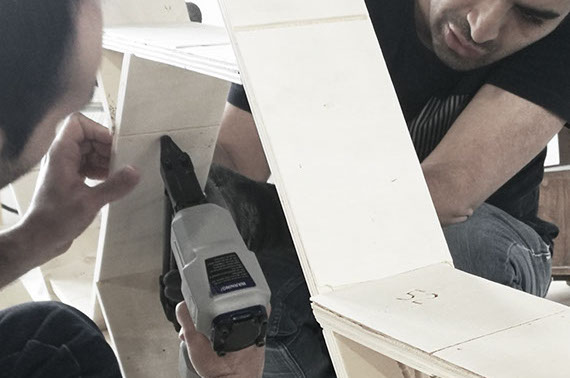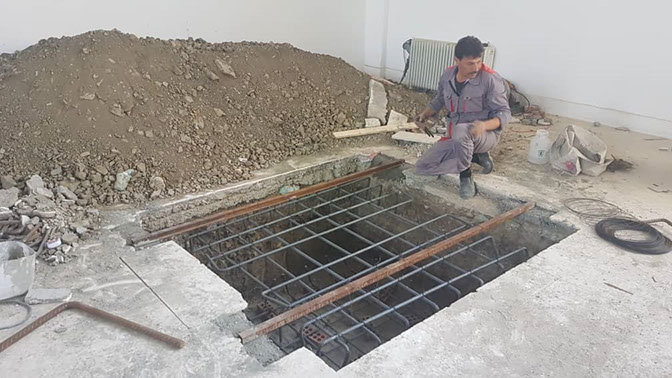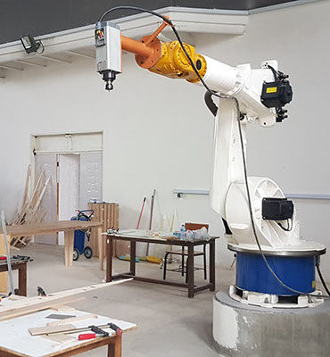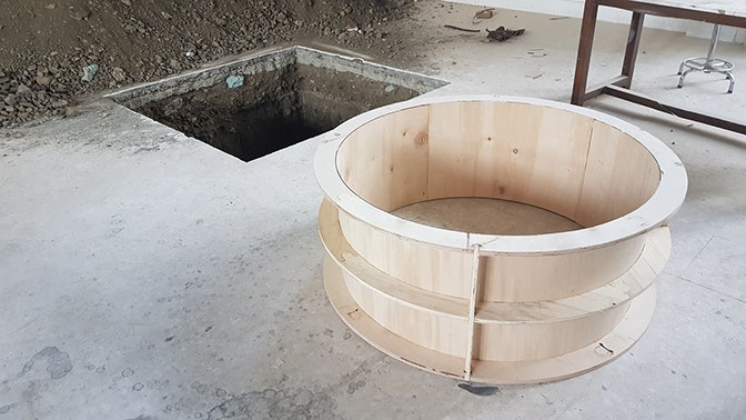To equip the digital manufacturing laboratory of the University of Arts with a robotic arm, I designed and built the mold out of 3mm thick plywood for the concrete foundation, considering the rebars and the screws for the robot base. I then handed over the mold to the contractor and supervised the concreting operation.