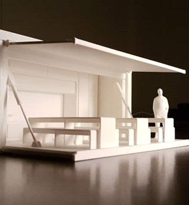 For the responsive window shades, I designed and built the frame out of black Plexiglas. The walls of the frame were cut by a laser cutter. For the motorized parts, I utilized custom 3D-printed parts along with Servo motors. I developed the circuit using bread board, an LED, and a lumen meter module and programmed an Arduino Uno microprocessor the respond to the receiving light.