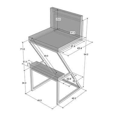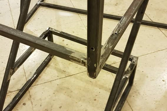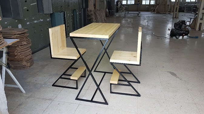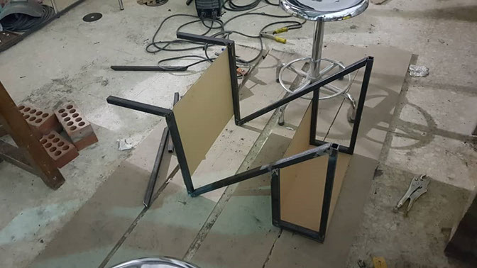 To build these two chairs and the table I developed the primary sketch of the client. Based on that I made a revision and prepared the parts for assembly. I cut the profiles with a grinder machine and welded them together according the isometric documents with provided dimensions, then I applied the stainless coating and painted the profiles to build the chassis. Finally I connected the wooden parts with screws to the chassis and shipped the set to the client wrapped in bubble wrap.