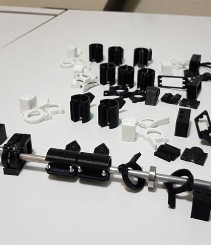 One of our earliest digital fabrication projects was building a custom CNC machine. After acquiring our 3D printer, we decided to create a 5-axis CNC machine from scratch. I fine-tuned and optimized most of the parts in 3D modeling software, and then prepared the files for the printer. Following what I had learned, I 3D printed all the parts and assembled the CNC machine successfully. We even conducted some initial tests using an Arduino Mega as the microprocessor and stepper motors to control the first three axes.