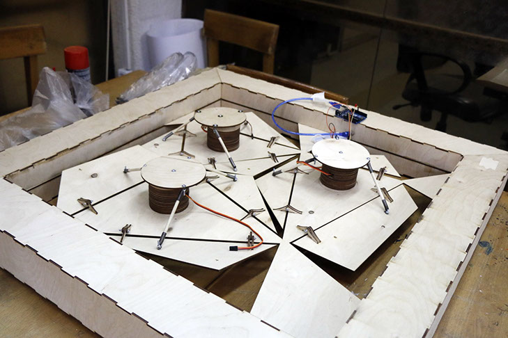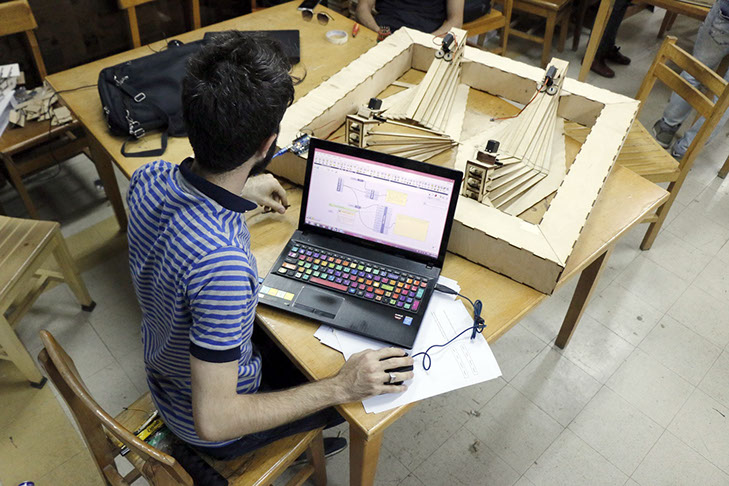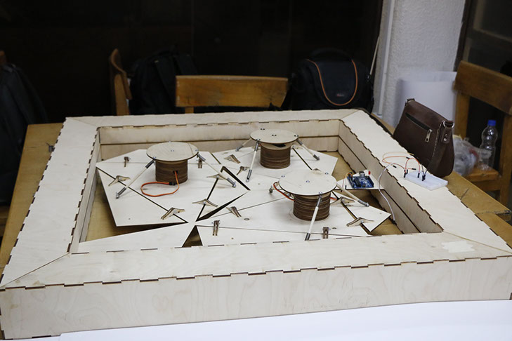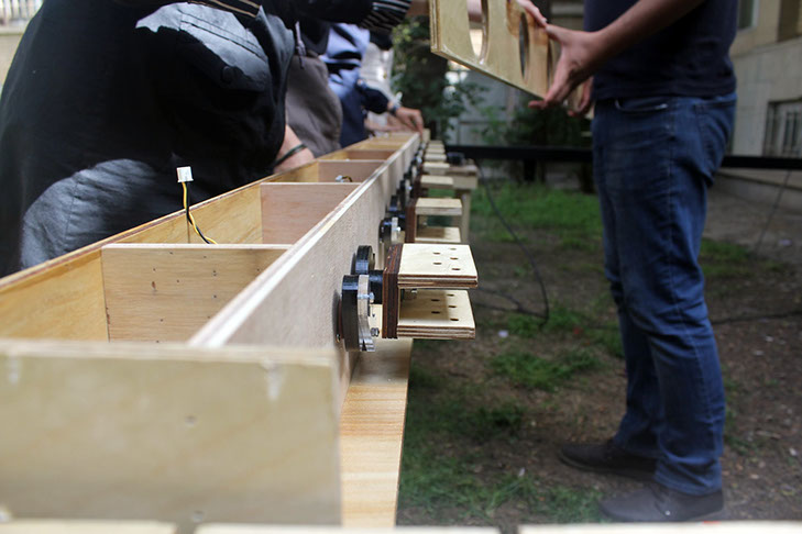 During the workshop, the participants designed plywood made window shades models that responded to changing lighting conditions to test their ideas. They used lumen meter modules and mostly Servo motors. We helped the program their Arduino microprocessors and making their circuits to achieve their desired results. In the end, with the help of the participants, we created a louver structure that served as a shade for one of the university's windows. All in all this workshop was a priceless experience for us as instructors and hopefully for the Buali University students as well.