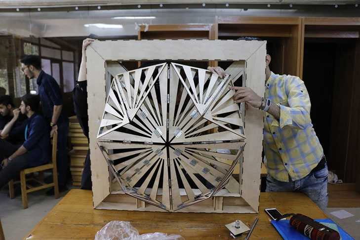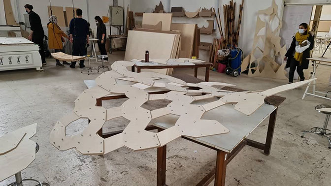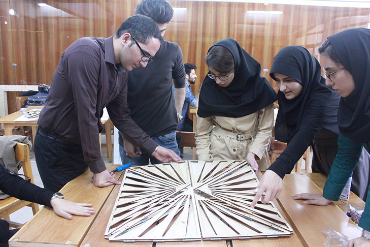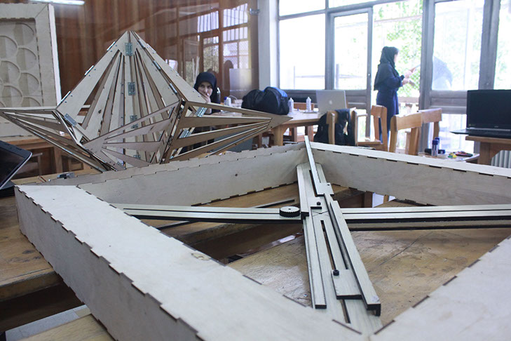 The desire to apply the knowledge of computational design practically led us to hold educational workshops with the aim of design and fabrication using digital fabrication tools. After gaining initial experience in holding several workshops, we were invited by the Dean of the Faculty of Architecture at the Art University to equip the applied science laboratory of the university located in the Farabi campus of Karaj city. In this way, the digital craft house, also known as the FabLab of the University of Arts, started operating under the guidance of the Dahi group in the winter of 2019.