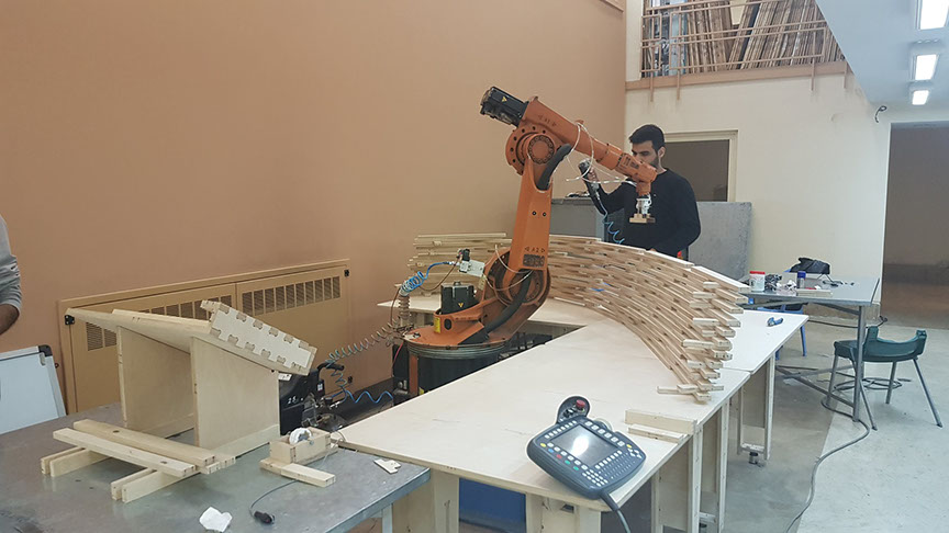 During the ten-day Robotism workshop held at the University of Tehran, participants focused on learning about computational design and robotic fabrication. The workshop utilized a KUKA KR6 robotic arm with a KRC2 controller. As the instructor, I had to master the principles of programming and operating the robot two weeks before the workshop, so I could effectively teach the participants.